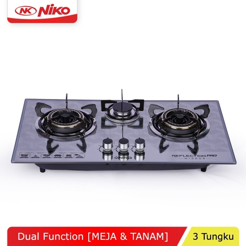 Pro Phantom Kompor Gas Kaca 3 Tungku Reflection NIKO Pro Phantom / kompor tanam / kompor meja