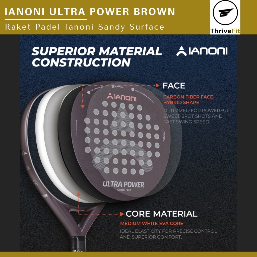 IANONI Ultra Power Padel Racket / Raket Padel Full Carbon Sandy Surface