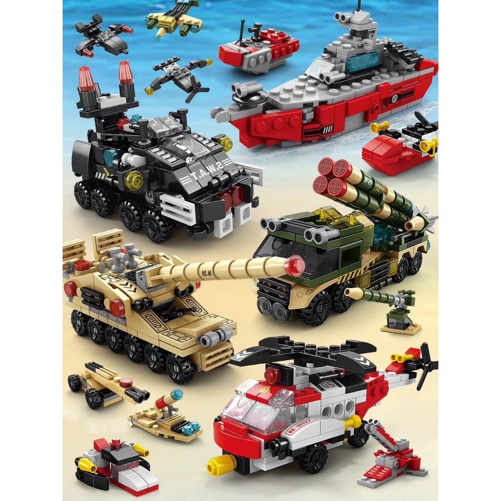 Block 6-in-1 Tank Tempur Militer Model Blok Brick Bangunan Partikel Kecil Mainan Anak-anak Murah Gratis Ongkir