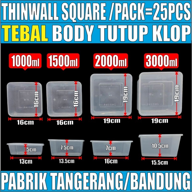 Thinwall SQ Tebal 67gr 1000ml 1500ml 2000ml 3000ml Victory /Pack Kotak Makanan Persegi Square JSP Murah Gratis Ongkir