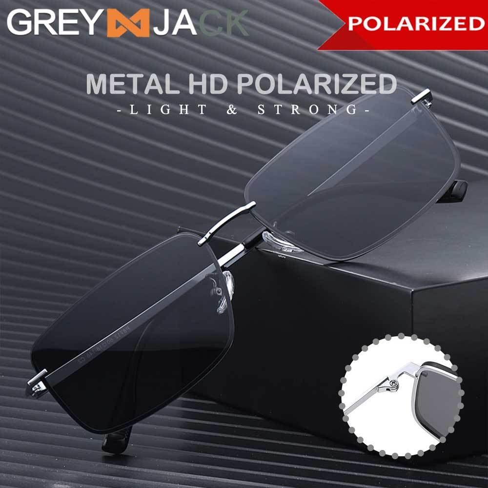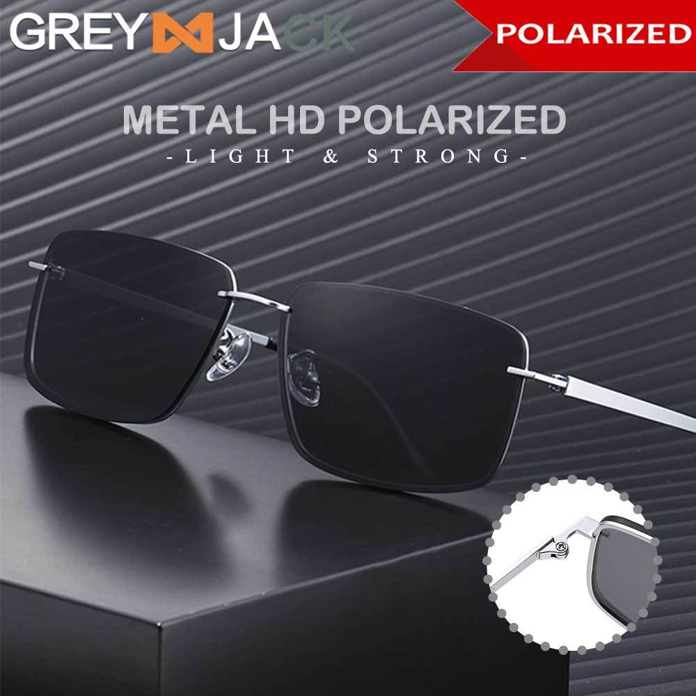 Grey Jack Kacamata Hitam Sunglasses Polarized Kotak Rimless Bahan Metal Ringan Tanpa Bingkai Anti Silau UV400 8712