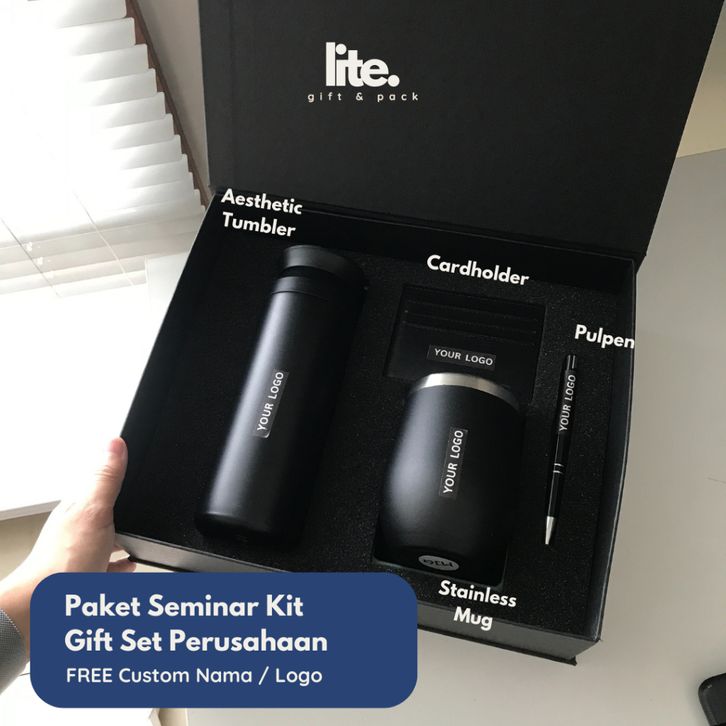 PROMO [READY & BISA SATUAN] CUSTOM LOGO HADIAH GIFT BOX SOUVERNIR KANTOR, TUMBLER + MUG + CARDHOLDER + PULPEN