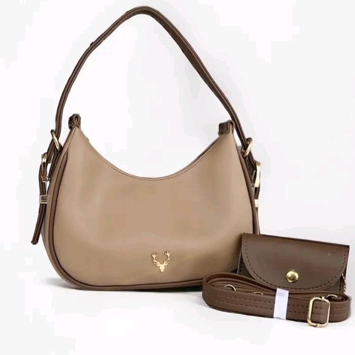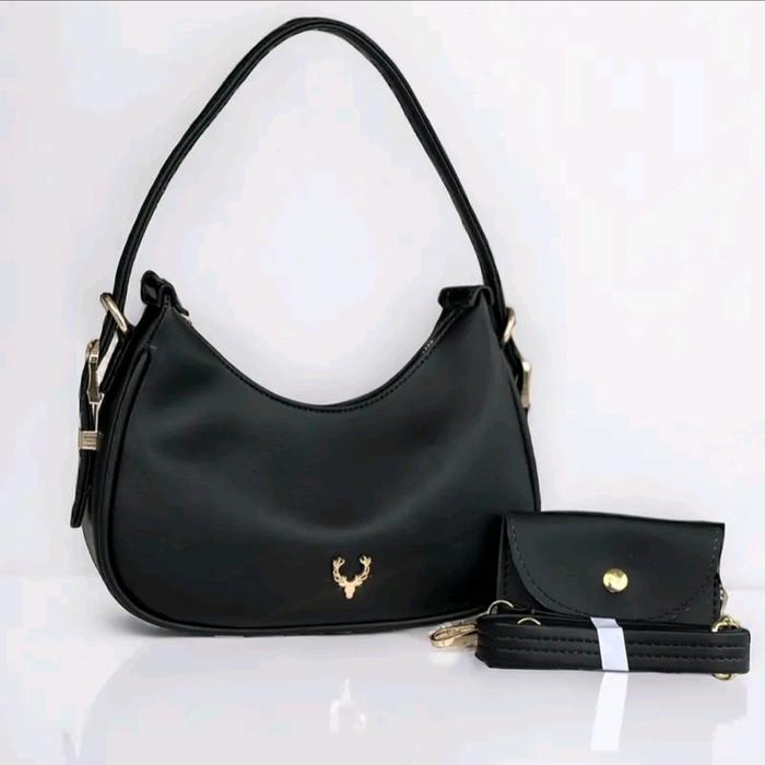 Tas selempang wanita bulan sabit kekinian free dompet kecil lucu logo rusa tas viral tas trendy - hitam