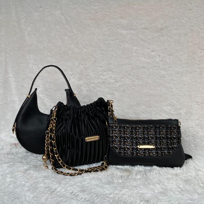 PAKET HEMAT 3PCS TAS SELEMPANG WANITA WULAN SUNNY DOMPET CEWEK TAS KETIAK WANITA - HITAM SEMUA