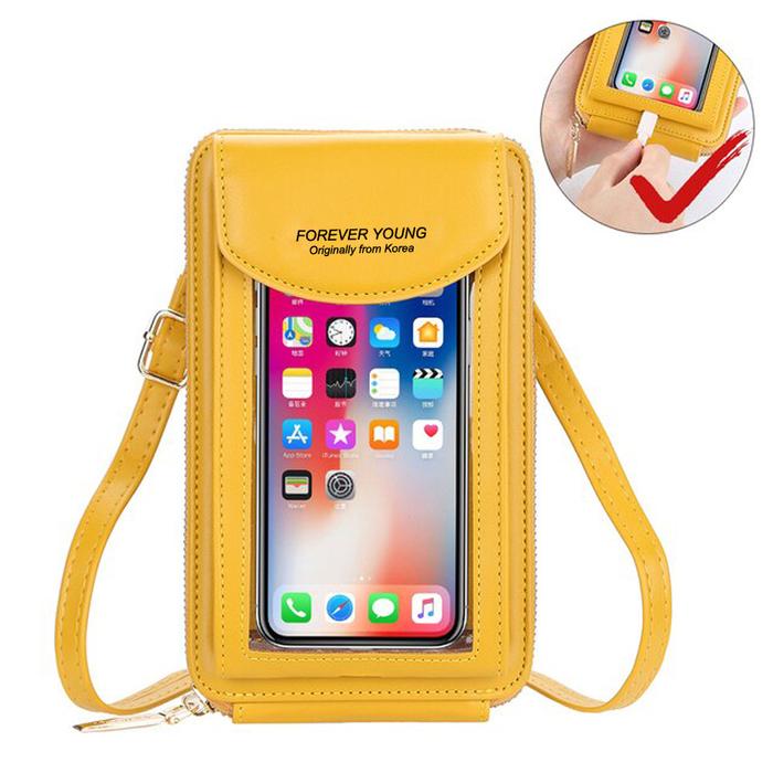 Tas hp wanita layar sentuh bahan miniso dan mika di lengkap penutupmagnet Selempang - kuning