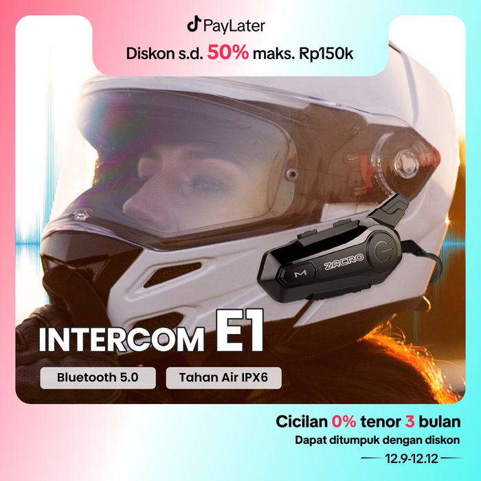 ZACRO E1 Intercom helm Bluetooth 5.0 FM Radio intercom dua arah dan Peringkat tahan air IPX6
