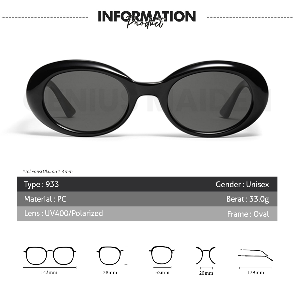 Genius Maiden Kacamata Hitam Sunglasses Fashion Style Pria Wanita Polarized UV-400 Premium Acetate