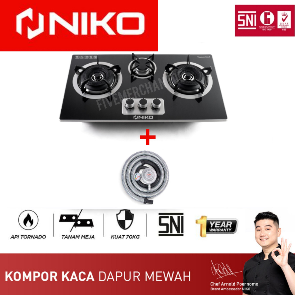 Kompor Gas Tanam Niko TITANIUM LITE TIGA 3 Tungku Built In Hob Gas Stove Murah SNI Garansi 2 in 1 Meja & Tanam