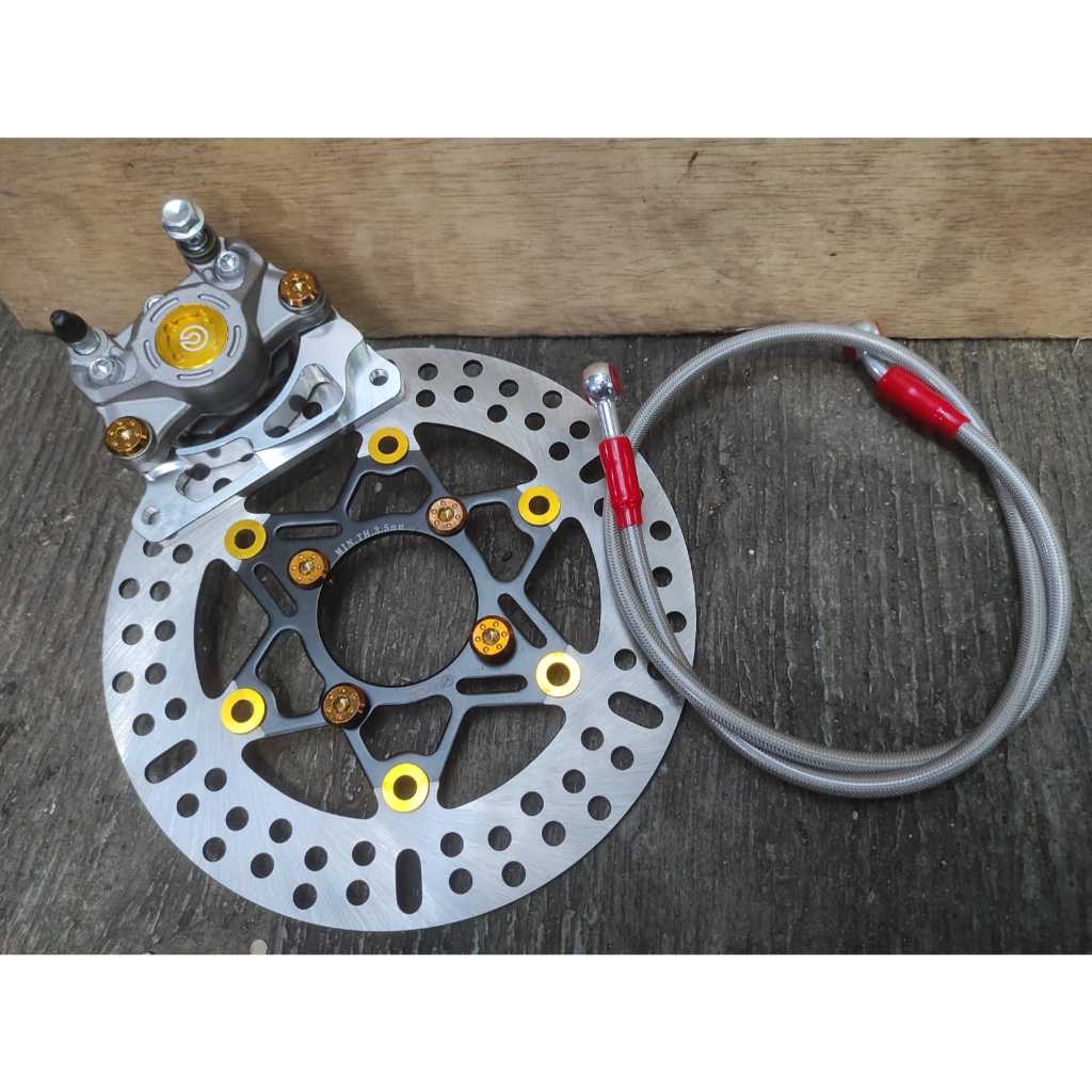 PAKET KALIPER 2PISTON + PIRINGAN DISC 220MM + SELANG REM 90CM + BAUT DISC + BREKET 220MM UNIVERSAL MOTOR BEAT MIO VARIO