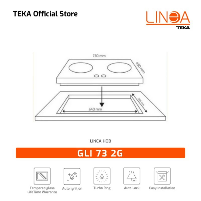 KOMPOR TANAM KACA TEKA GLI 73 2G - 2 Tungku, Auto Ignition, Kaca Temper 8mm, Hitam Elegan