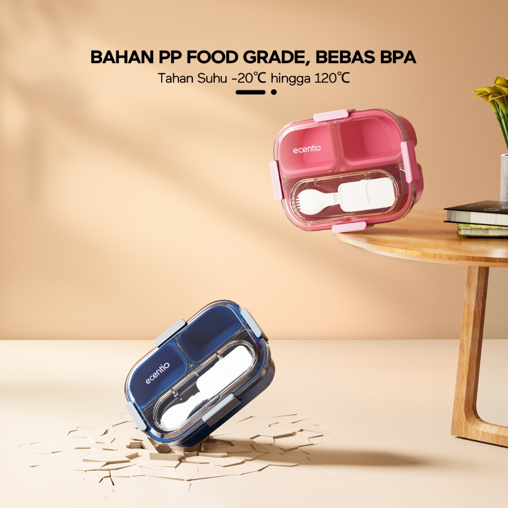 ecentio lunch box 2.0 anti tumpah 1100ml 3 gird anti tumpah BPA tidak campur Bau wanita muda kantor Free free sendok kot