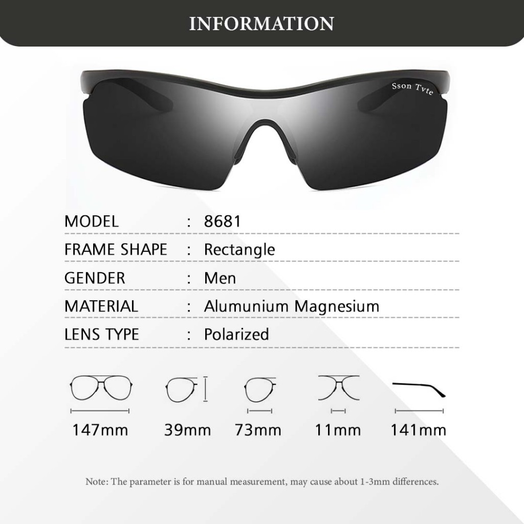 SSON TVTE Frame Kacamata Hitam Sport Polarized Sunglasses Pria Wanita Frame Kotak Aluminium 8681