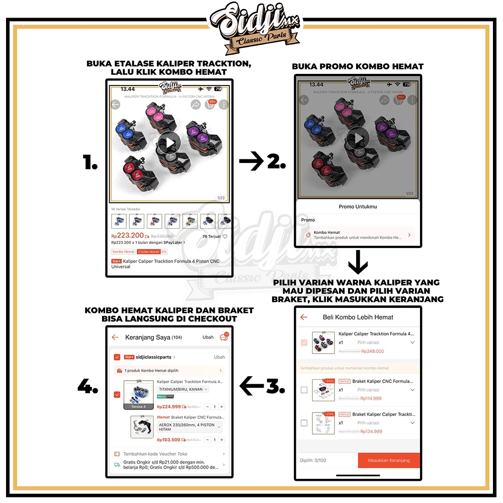 Kaliper Caliper Tracktion Formula 4 Piston CNC Universal