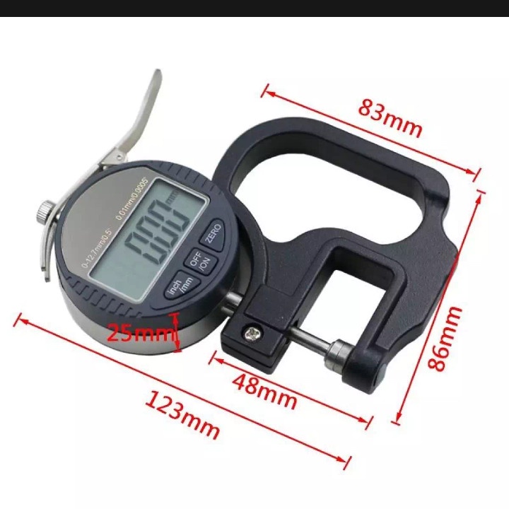 Alat Pengukur Ketebalan Thickness Gauge Digital Ukur Logam Plastik Kertas Plat 0-12.7mm 0.000 inch / 0.01 mm Dan Bisa Bu