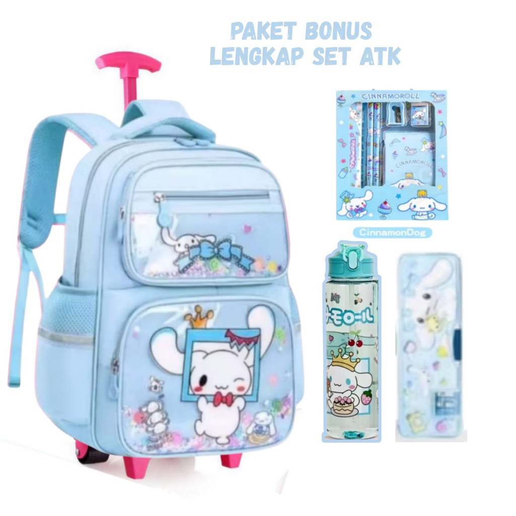 Tas Ransel Troli Anak Sd Tas trolly anak Perempuan Sd Motif Kuromi Printing Free Set atk