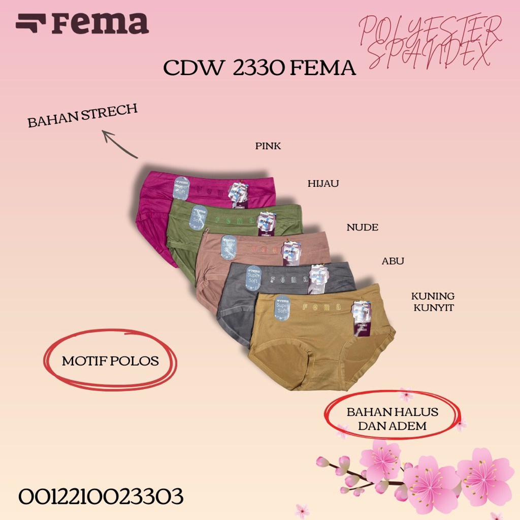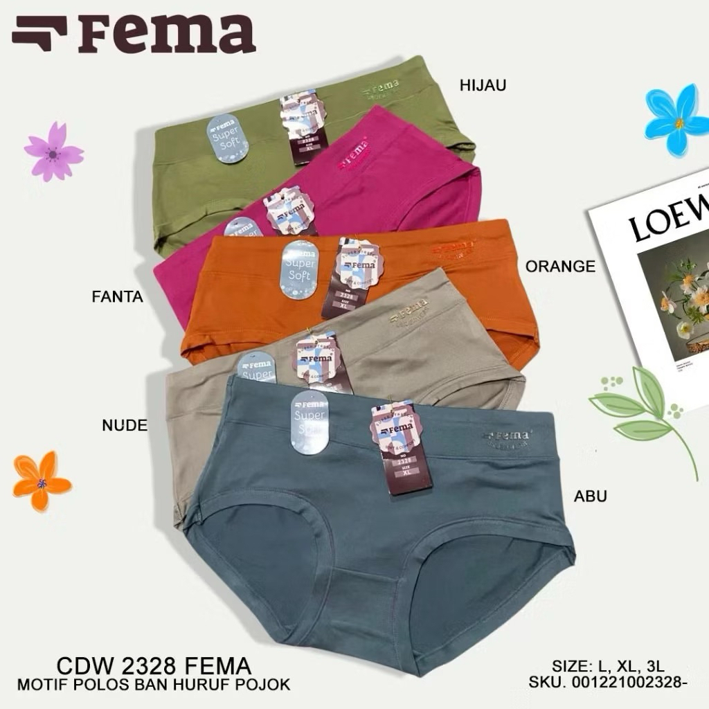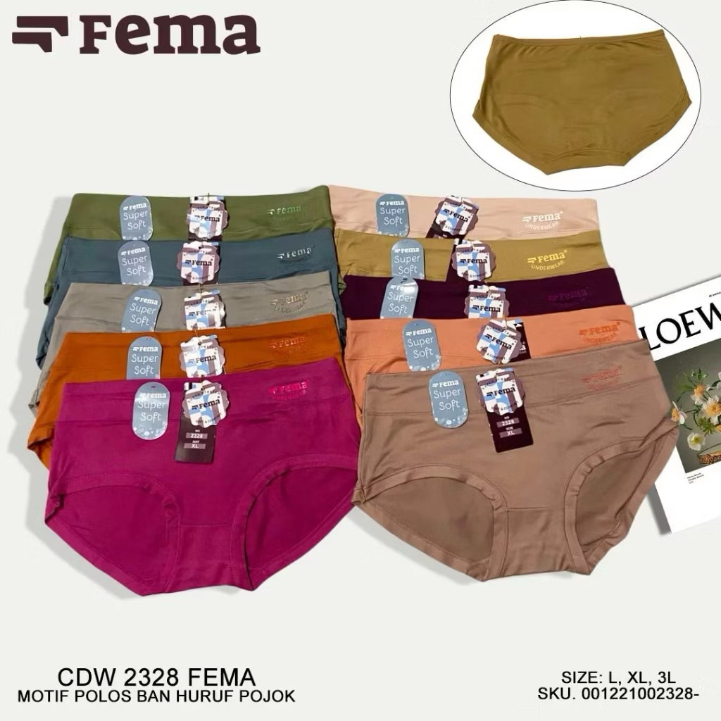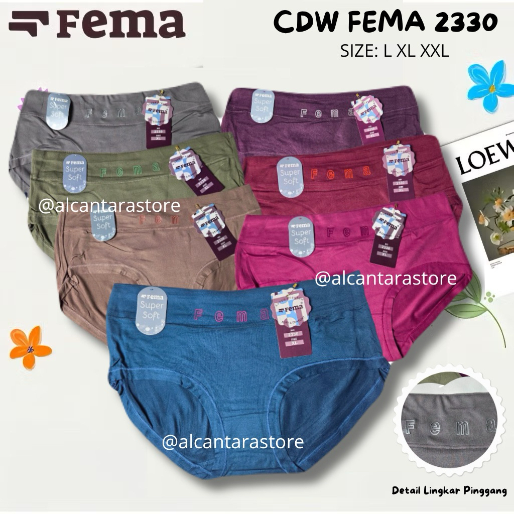 3,6,12Pcs CD Celana Dalam Wanita Fema 2330 Highwaist Katun Spandex Motif Polos Ban Huruf Tengah Fema Murah Gratis Ongkir