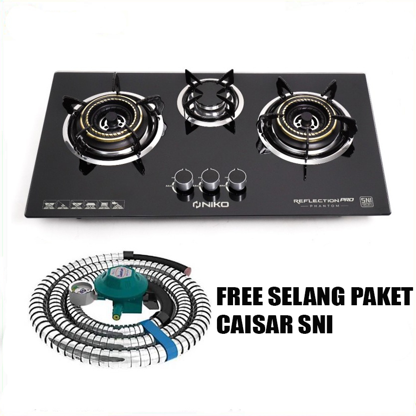 NIKO KOMPOR GAS TANAM KACA HITAM SOLID 3 TUNGKU REFLECTION PRO PHANTOM