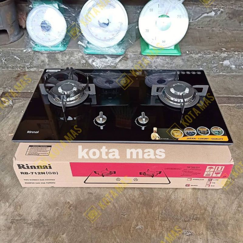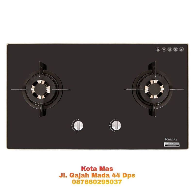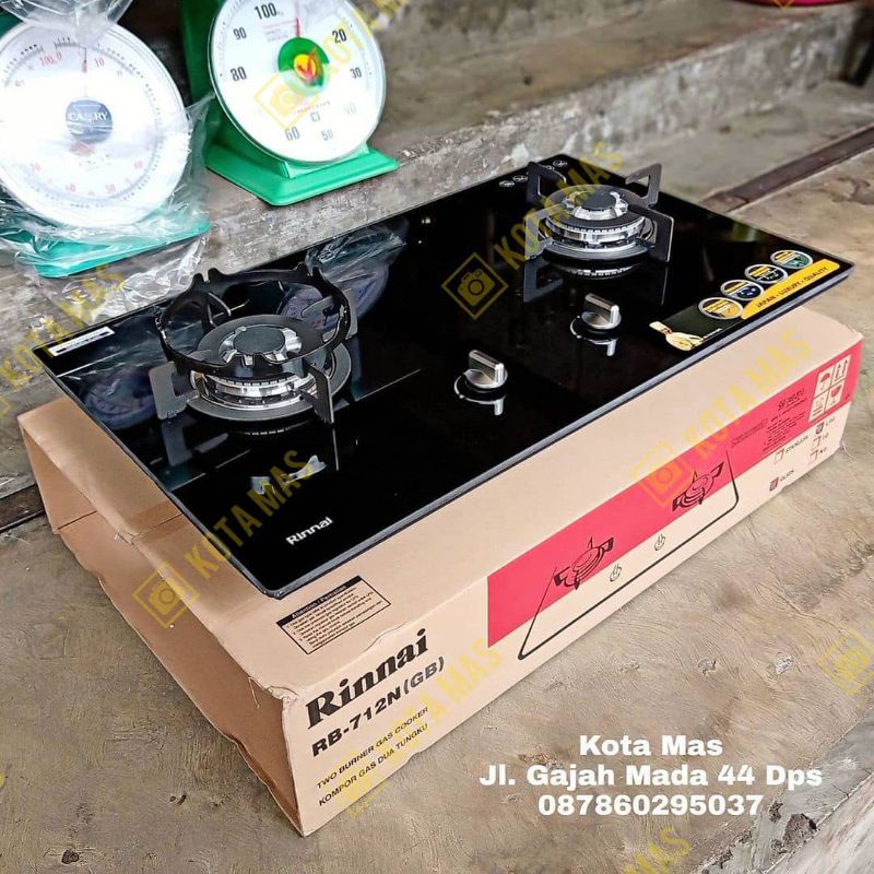 Kompor Tanam Rinnai RB712NGB Glass Gas Stove Kaca 2 Tungku Murah Baru Denpasar