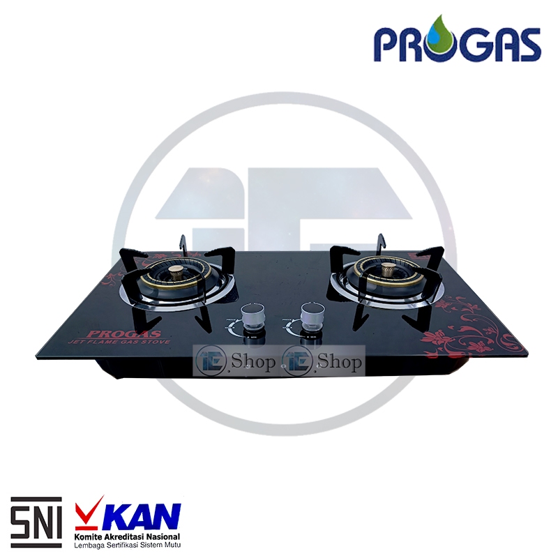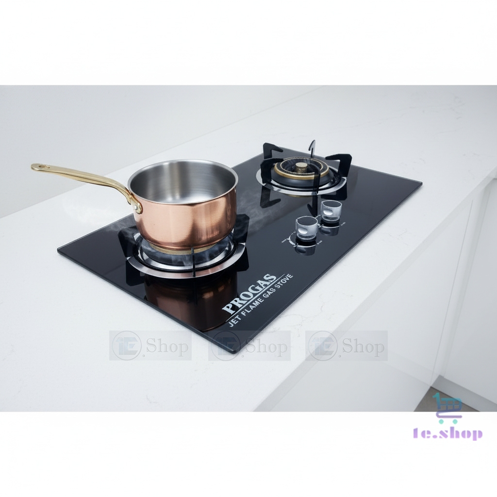 Kompor Progas Tanam Kaca 2 Tungku Gas Hitam Tanam & Meja