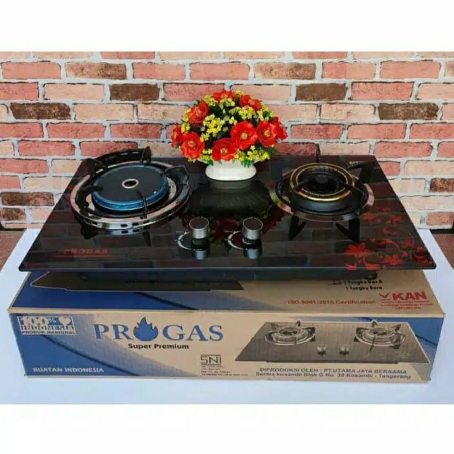 (Expedisi) Kompor Tanam Progas 2 Tungku PG-569 Hitam Kaca