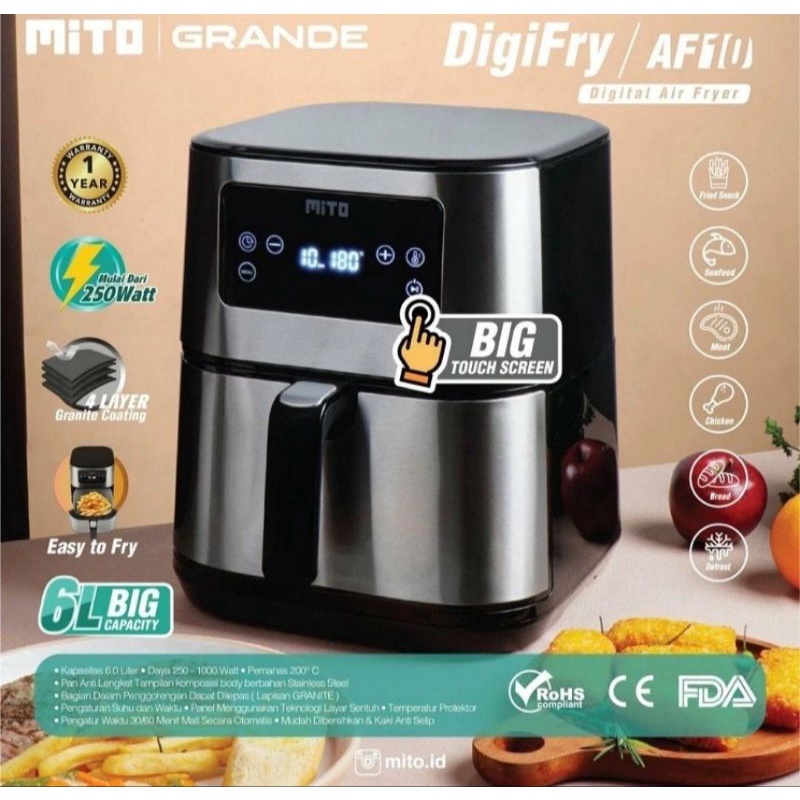 Mito AF10 Digital Air Fryer 6 LIter Capacity Grande MITO Digifry AF-10