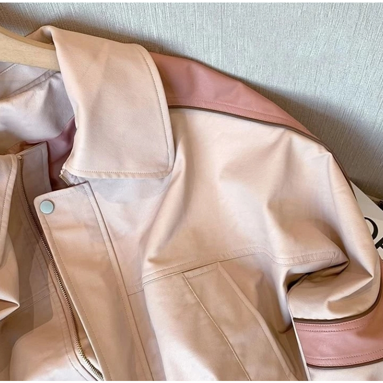 Premium leather Jaket Wanita Kulit Elegant Pink-Jaket CropKulit Oversize Leather Jacket Wanita