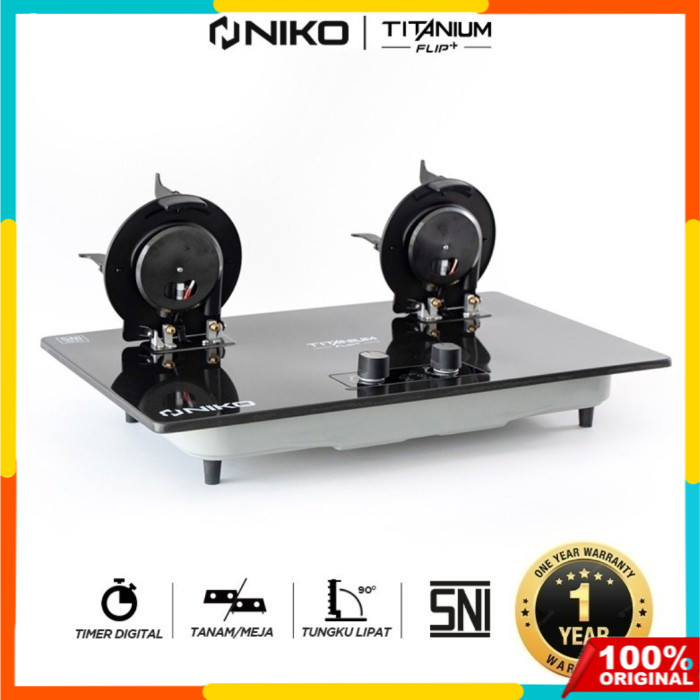 Niko Kompor Gas Tanam/Meja - Titanium Flip Stainless Hitam+Dual Timer