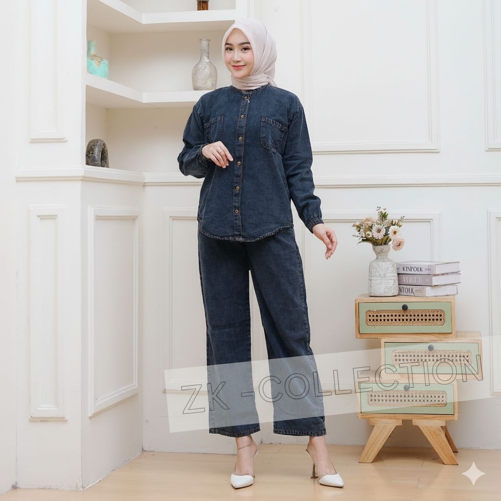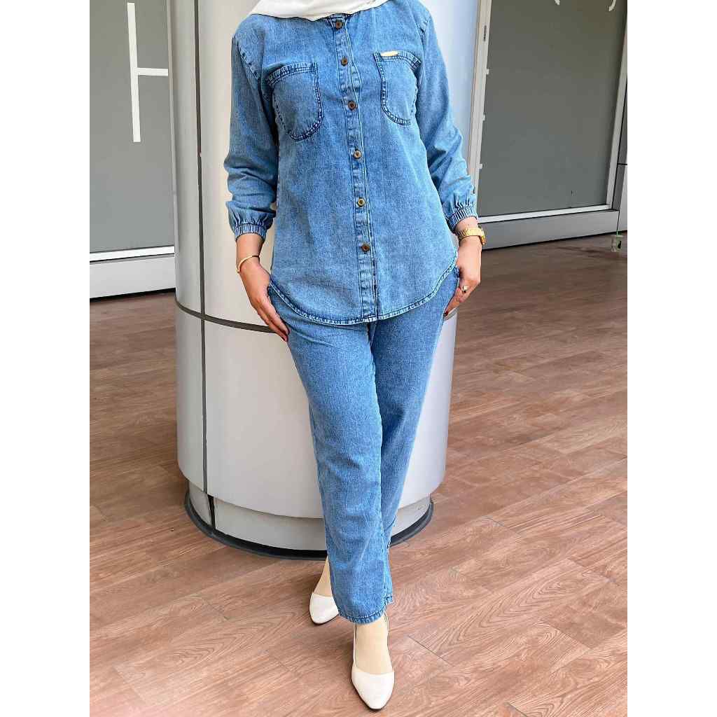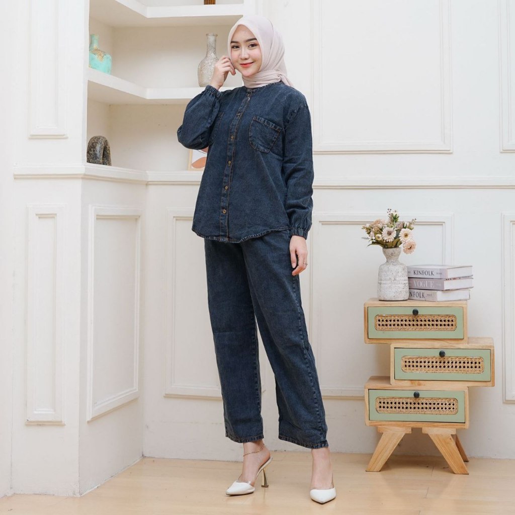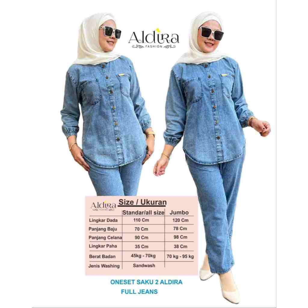 Aldira Setelan Jeans Wanita Terbaru – One Set Jeans Wash Premium Standar & Jumbo Kekinian