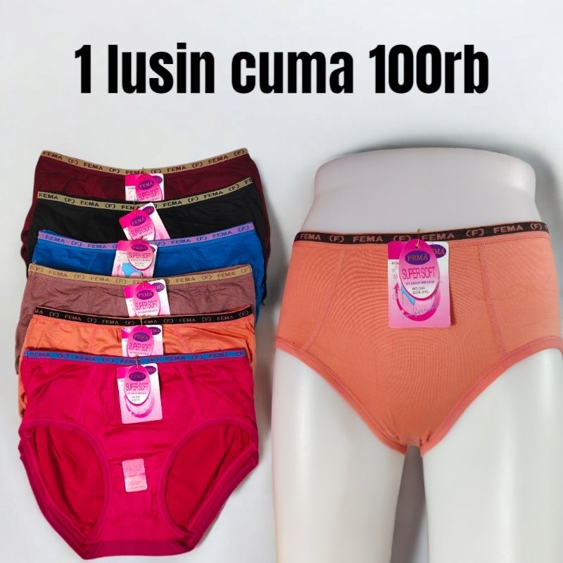 12 pcs celana dalam wanita super lembut FEMA size L XL XXL- CD remaja polos Murah Gratis Ongkir