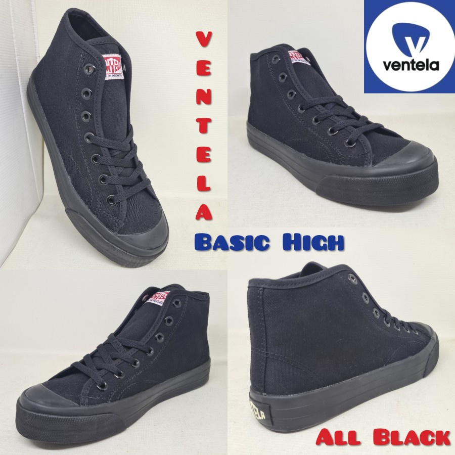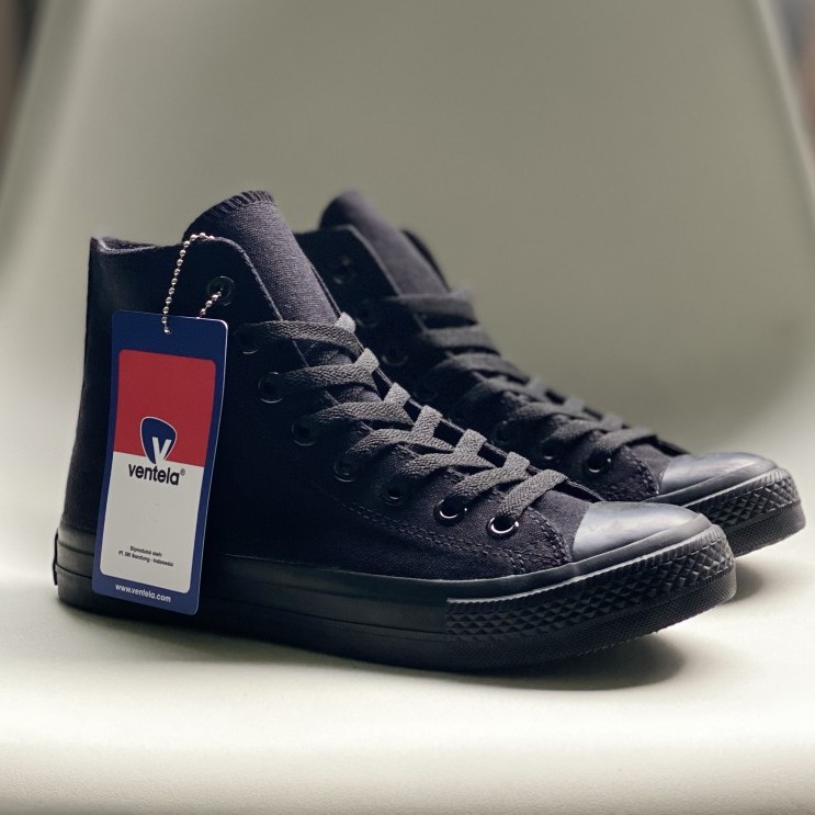 Ventela Ethnic High Full Black All Black | Sepatu Sekolah Hitam Vantela Ventella Ethnic Basic High Original