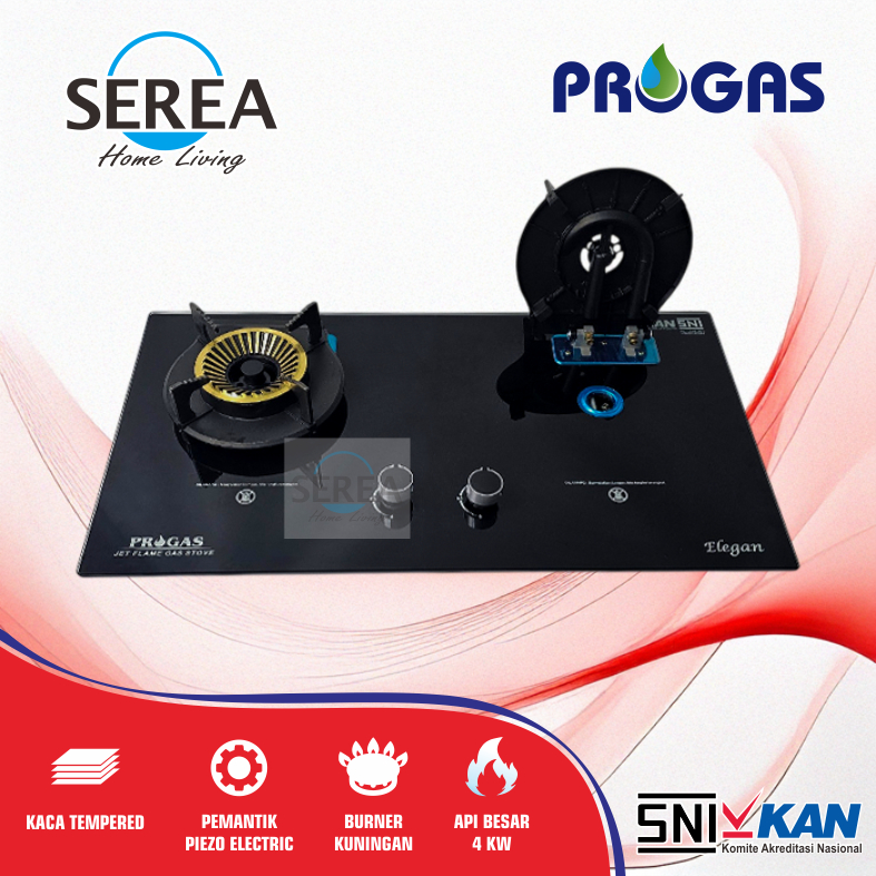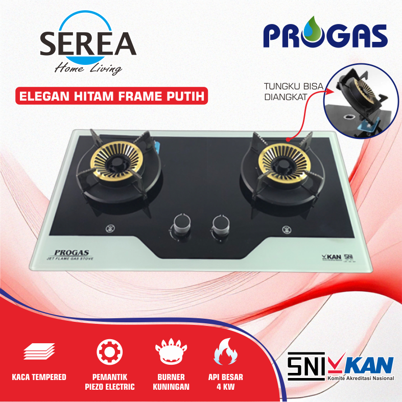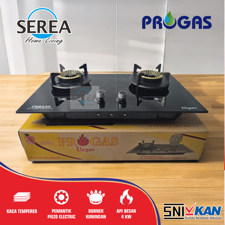 Kompor Gas Tanam Progas 2 Tungku Kaca Elegan Tungku Bisa Diangkat Api Besar SNI