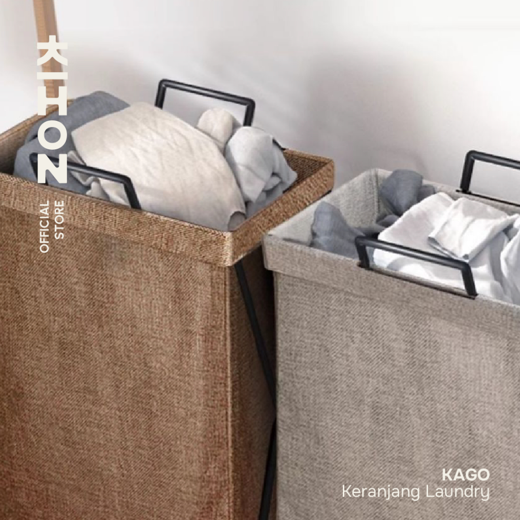 KIHON KAGO Keranjang Laundry Lipat Minimalis Dapat Dilipat Dilengkapi Rangka Besi Penyangga