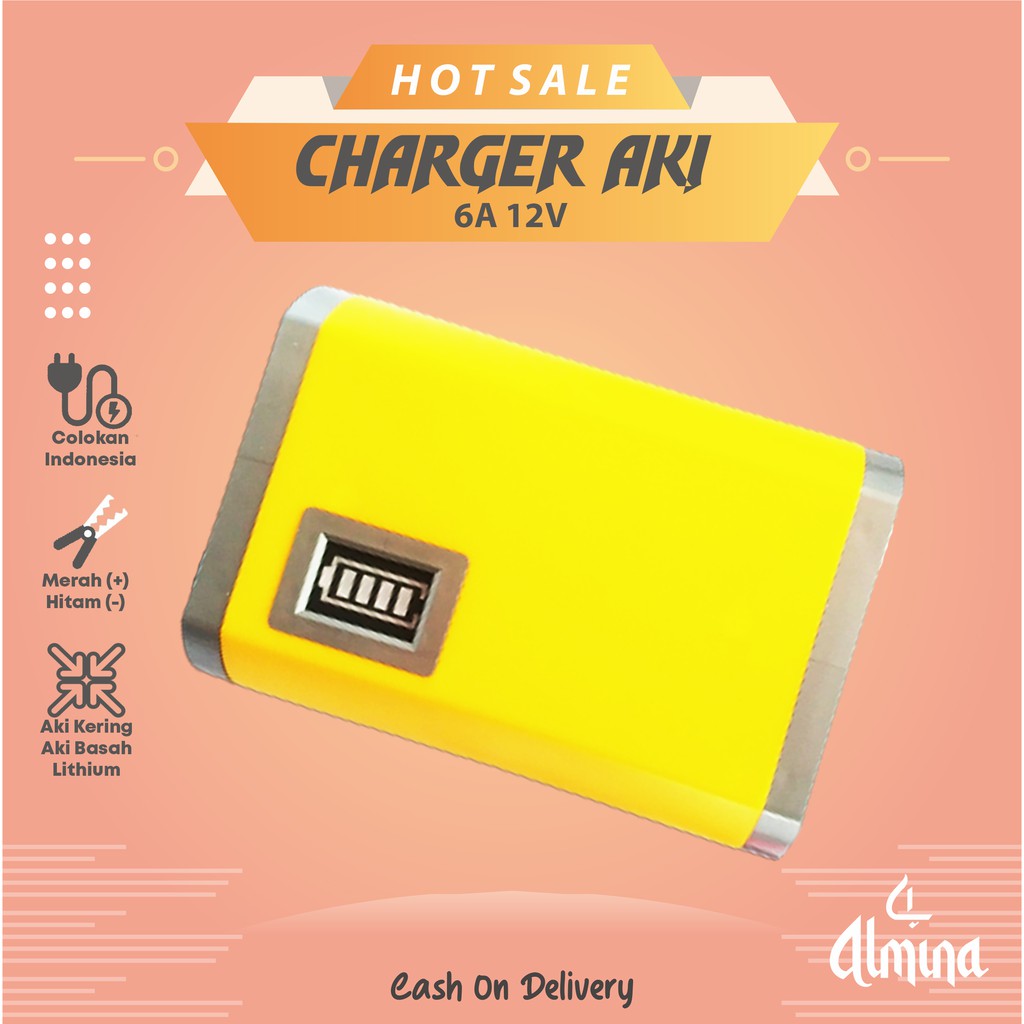 Charger Aki 6A 12V Cas Aki Mobil Dan Motor Otomatis Charger Accu Alat Cas Aki 6 amper Almina Murah