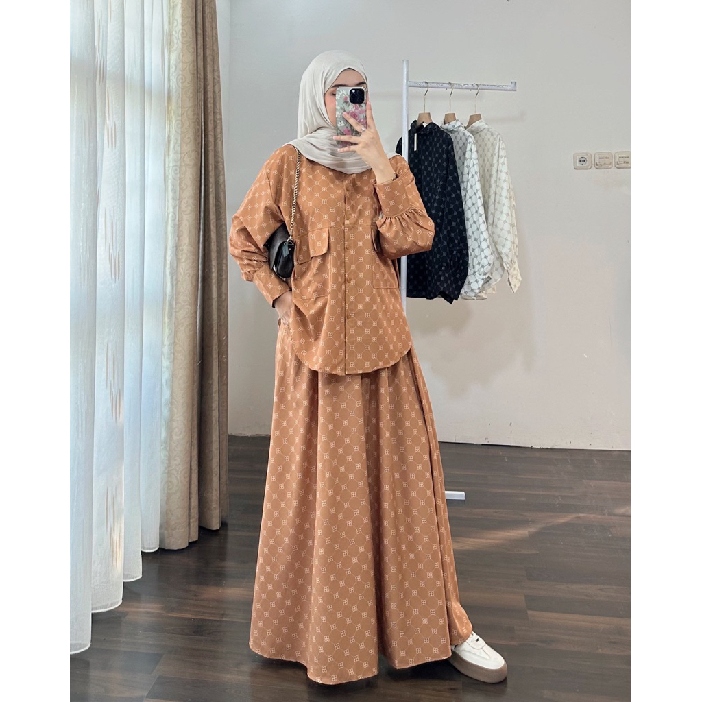 [ NEW ] Sada Set Rok Motif Setelan Rok Motif Bahan Twill Satin Bangkok