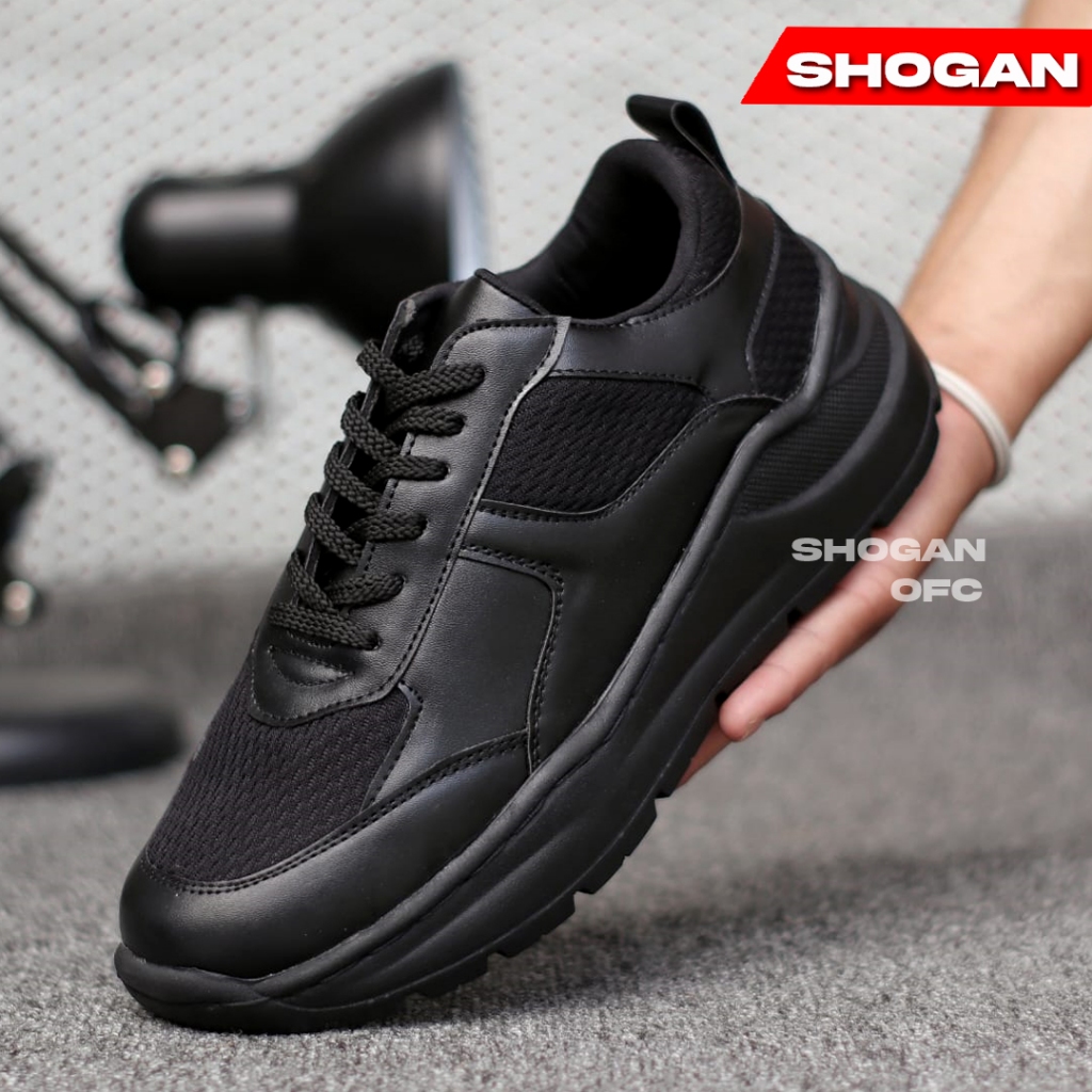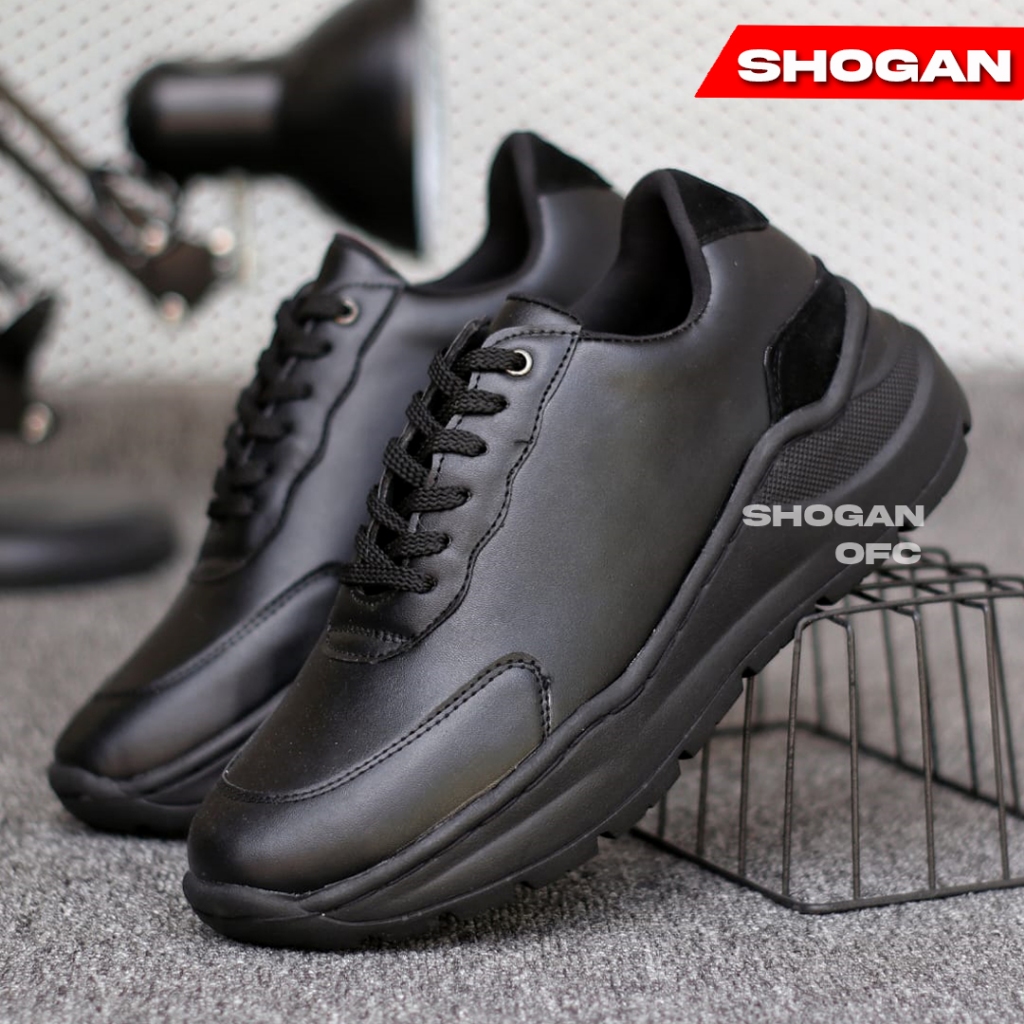 Gone Black Sepatu Casual Sneakers Hitam Formal Kerja Kuliah Sekolah