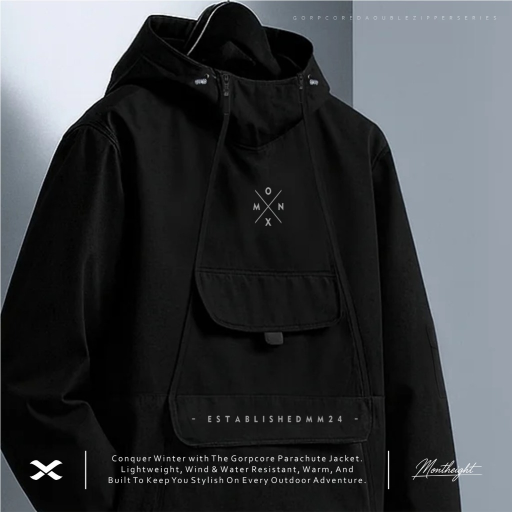 JAKET PARASUT PRIA CAGOULE DOBLE ZIPPER PREMIUM WATERPROOF ANTI AIR MODEL TERBARU DISTRO MONTHEIGHT