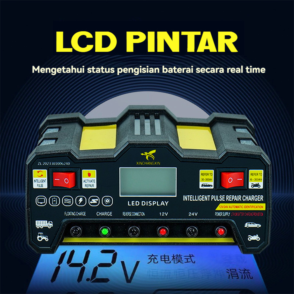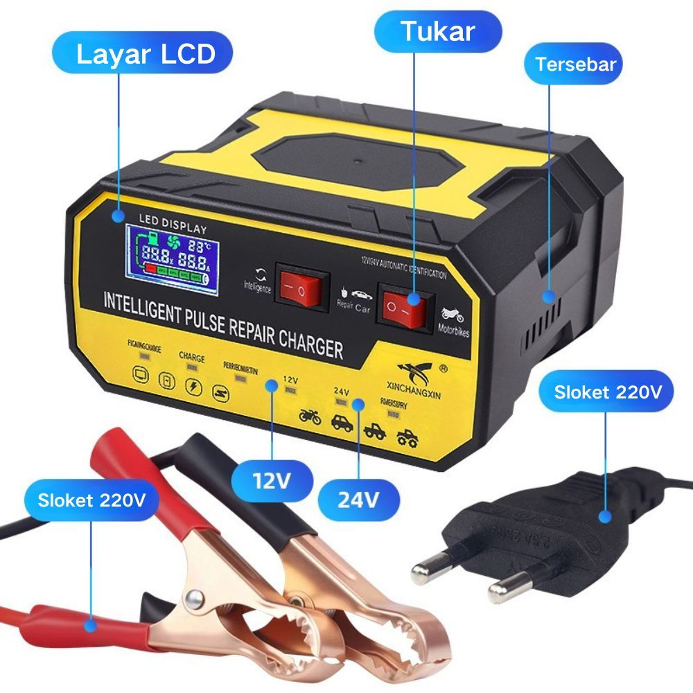 12V 24V Charger Otomatis Aki Mobil Motor Kapal Truk Automatic Fast Smart Charger 220W