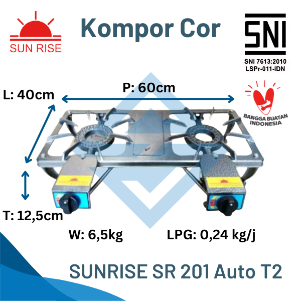 SUNRISE Kompor Besi Cor / Kompor Api Seribu 2 Tungku SR-201 Auto 2T Tekanan Rendah