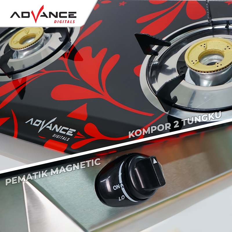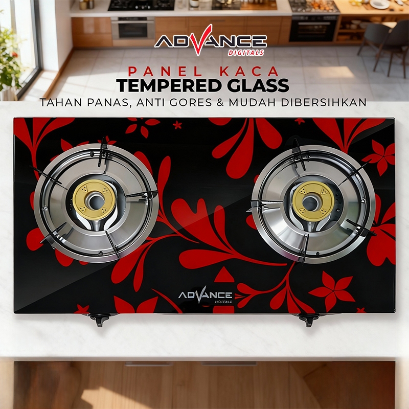 Advance GB200K / GB201K Kompor Gas Kaca / Kompor Tanam 2 Tungku Tempered Glass - FREE ONGKIR