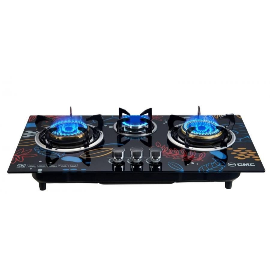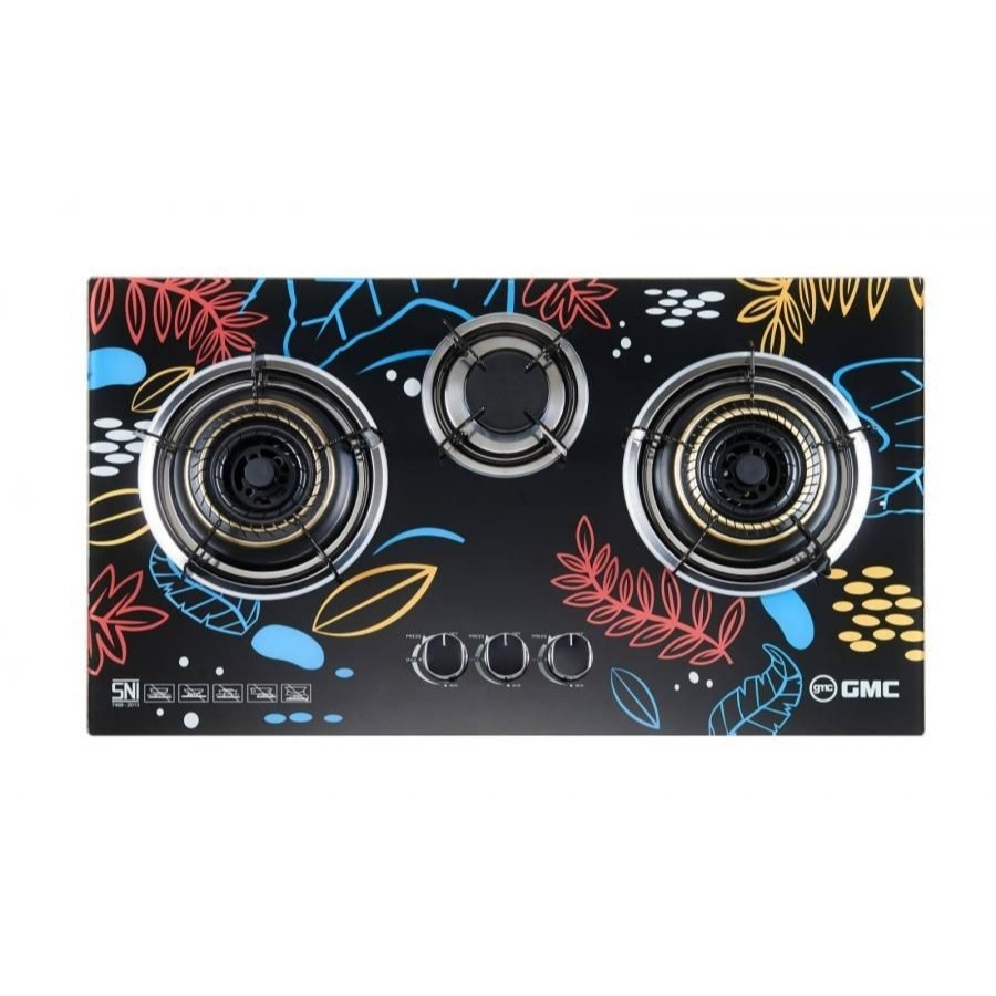 Kompor Gas 3 Tungku GMC 671 Kaca Tempered Glass 2in1