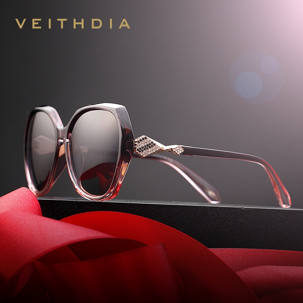 Kacamata Hitam Wanita VEITHDIA Bahan Polarized, Model Bingkai Kupu-Kupu Fashion, Perlindungan UV V3158
