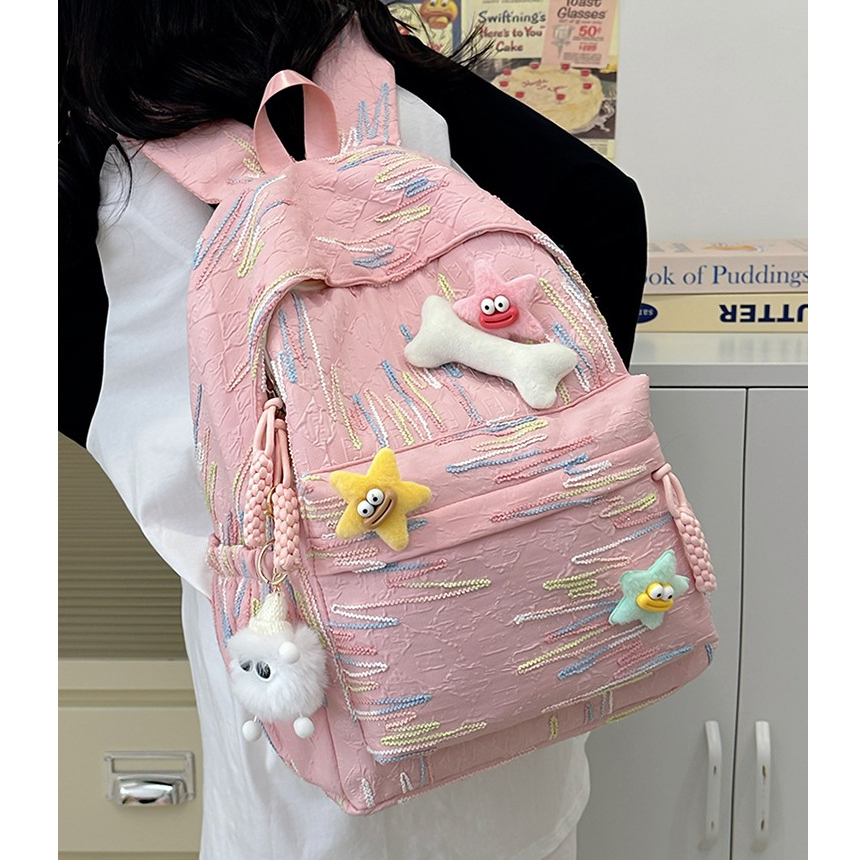 Mikilock Tas Sekolah Pink Tas Sekolah Ins Lucu Tas Sekolah SMA Korean Style Tas Sekolah Wanita Korea Siswa Fashion Impor