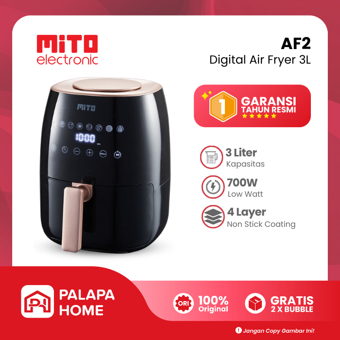 Mito Air Fryer AF2 Low Watt Kapasitas 3 Liter 3L | Penggorengan Tanpa Minyak Mitochiba DigiFry Go