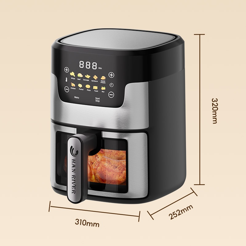 HAN RIVER Air Fryer Low Watt 650W Tubuh baja tahan karat 8L multifungsi