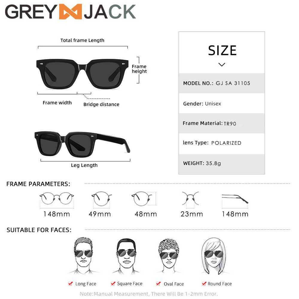Grey Jack Kacamata Hitam Sunglasses Anti UV400 Polarized Bahan TR90 Model Kotak Oversize Fashion Pria & Wanita 31105