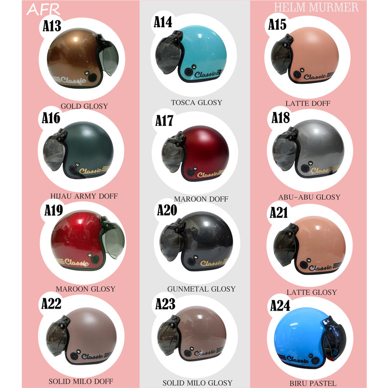 HELM TANPA KACA, KACA CBG HITAM JM, KACA CBG HITAM JP, KACA DATAR HITAM AFR