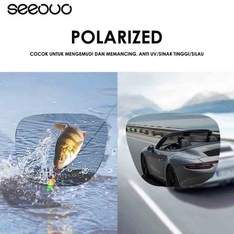 Seeouo Sunglasses Polarized Photocromic Fashion Glasses Kotak Stylish Unisex Pria dan Wanita Alumunium Magnesium 80081