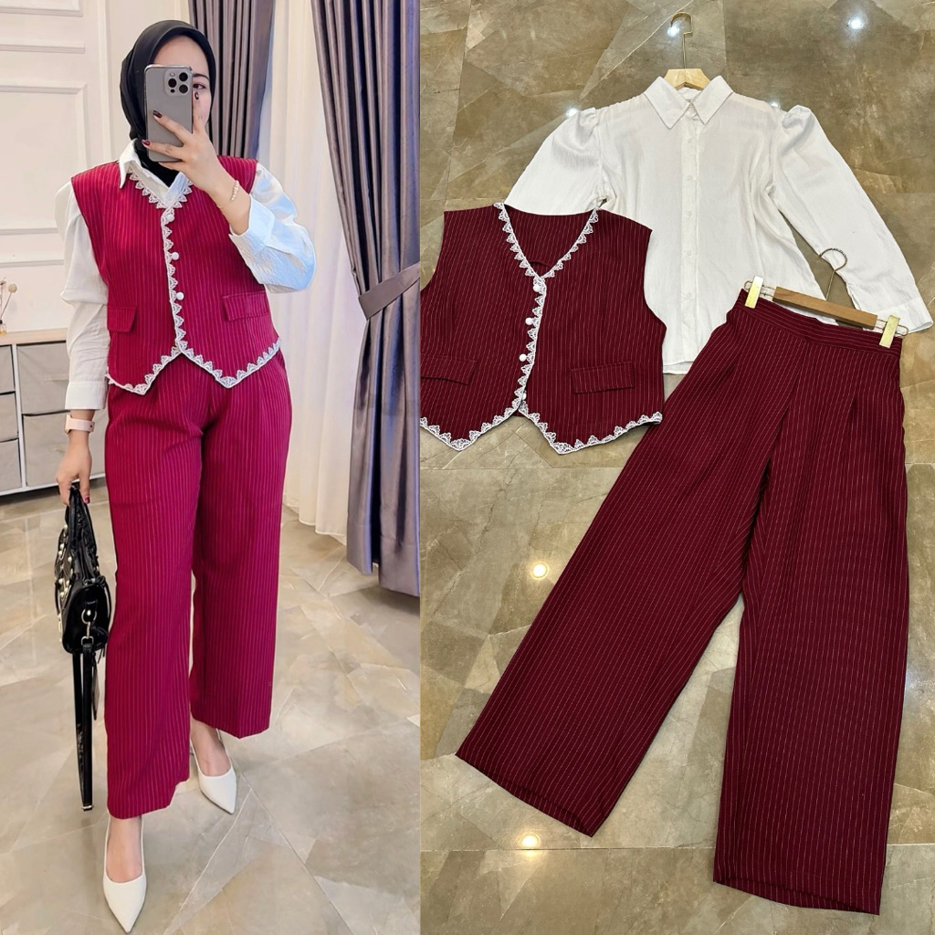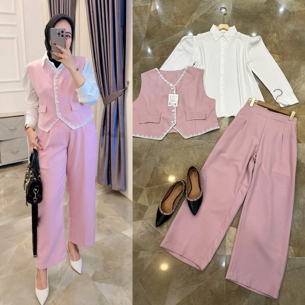 Setelan Soraya 3in1 Tweed Salur Korean Style Remaja Dewasa