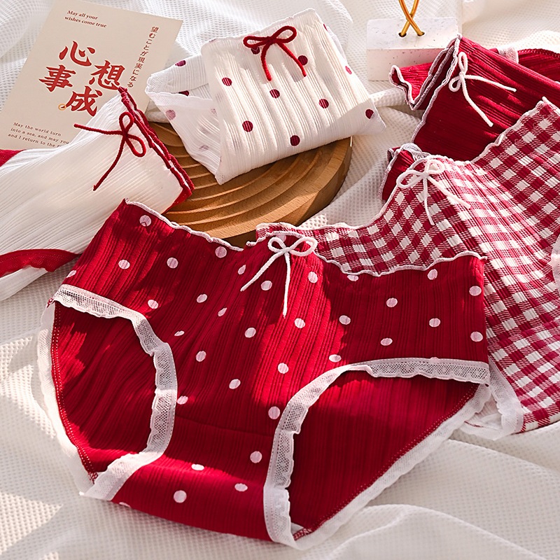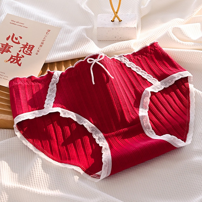 CD2143 Celana Dalam Red Wanita Lucu CD Style Jepang Renda Pita Merah Fashion Korean Murah Gratis Ongkir