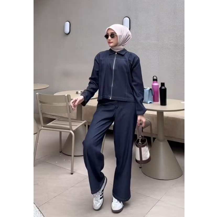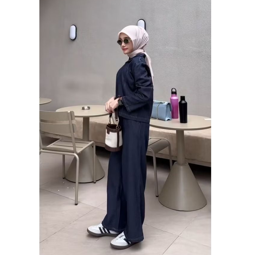 Lavyna One Set Denim by Amoura.id | one set denim pants | atasan bawahan